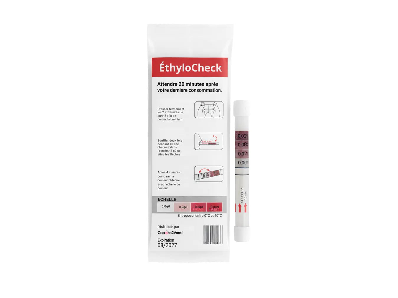 Boîte de 30 EthyloCheck™ – Éthylotests jetables préventifs (0,0 g/L à 0,8 g/L) – Prévention & Alcool
