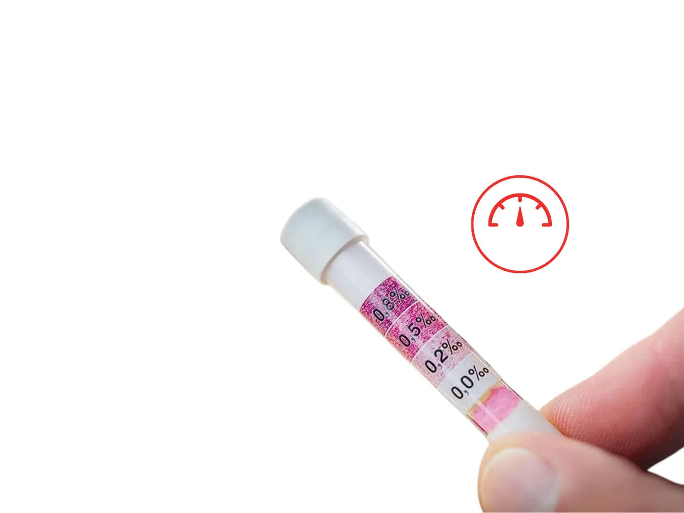 Chaque dispositif fournit une indication visuelle indicative du niveau d’imprégnation alcoolique à l’aide d’une échelle de référence : 0,0 – 0,2 – 0,5 – 0,8 g/L.